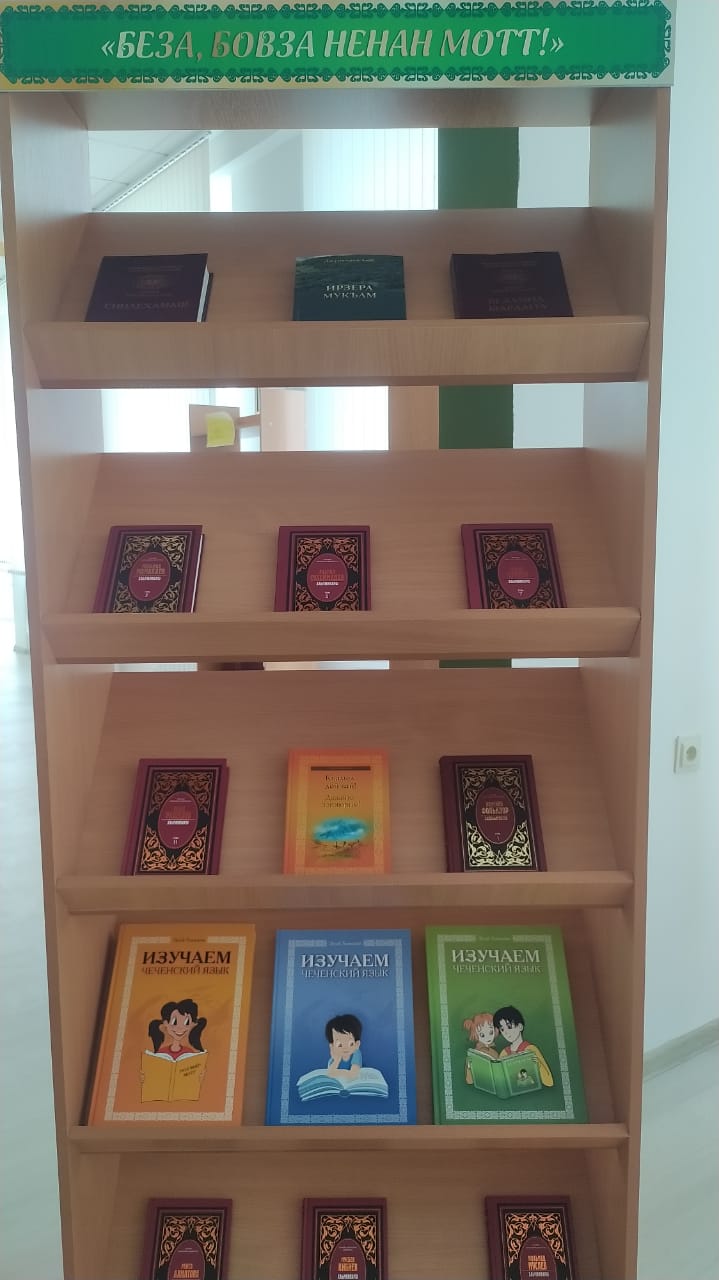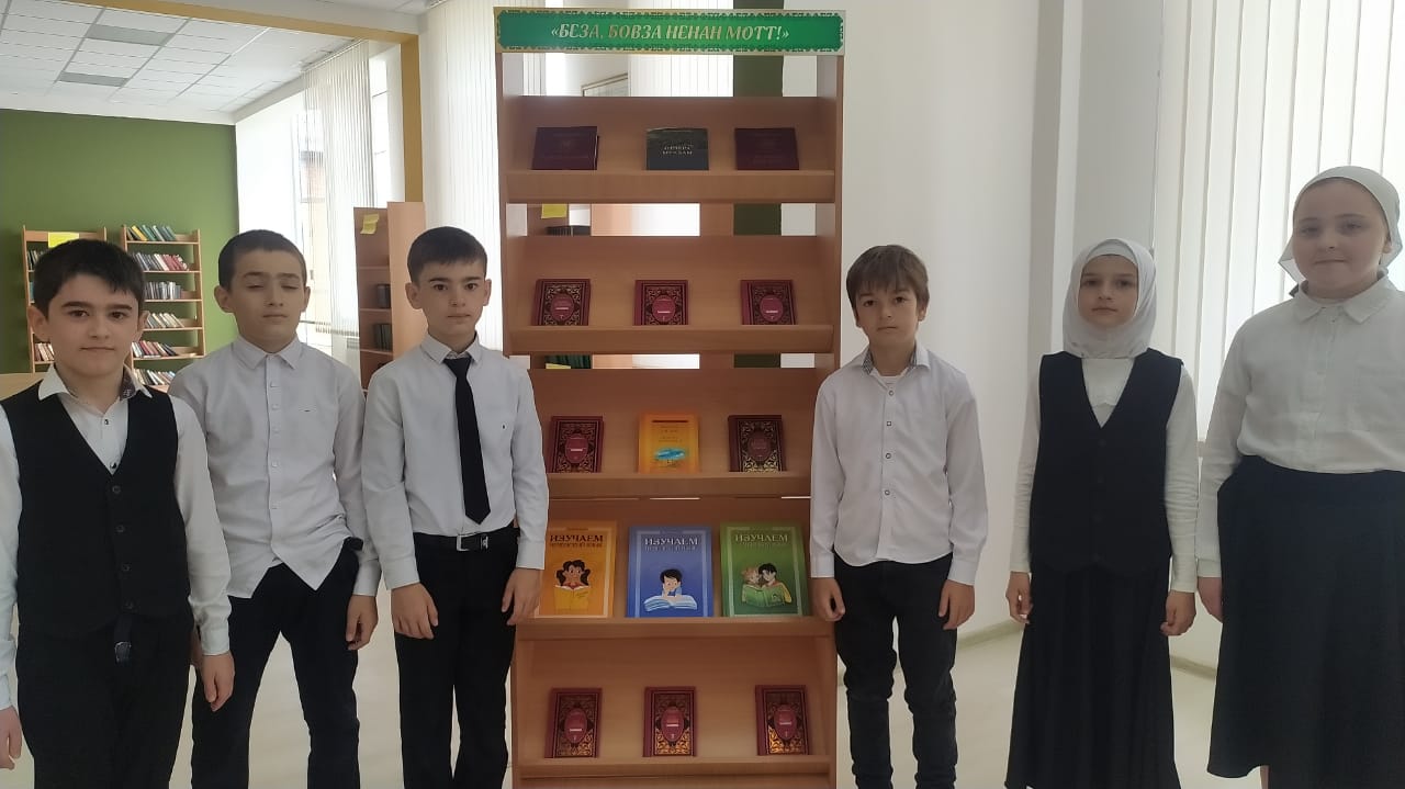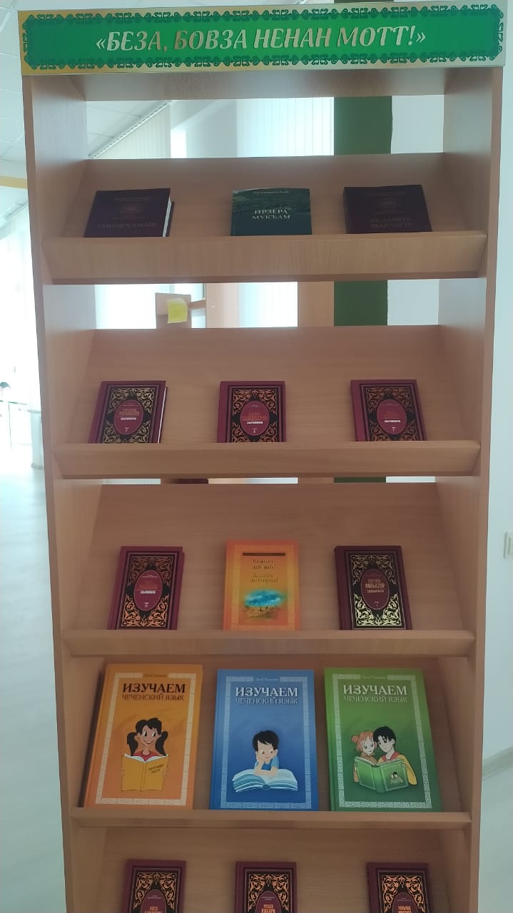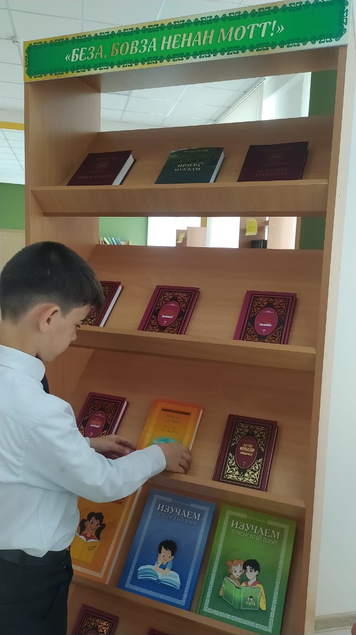 24 апреля 2024г. в 11.00 ч. Ко Дню чеченского языка и культурного наследия чеченского народа в библиотеке ГБОУ,, Центр образования,, была проведена выставка на тему ,,Беза бовза ненан мотт,,. Также библиотекарь рассказала присутствующим краткую историю зарождения праздника, о роли и значении чеченского языка в современном обществе, о том как сохранить наш язык и не утратить его корни.