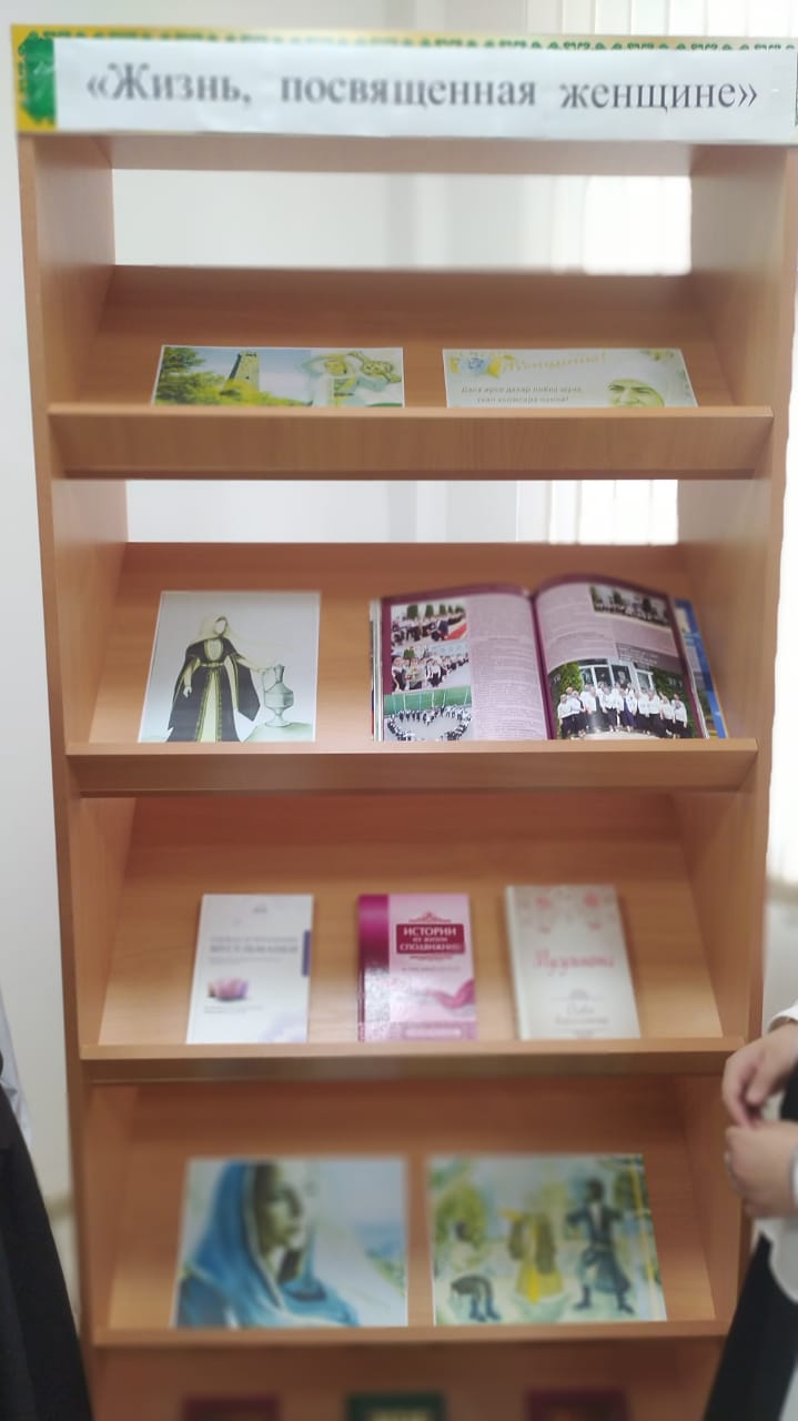 Из поколения в поколение Чеченская женщина является олицетворением доброты, любви и нежности.Согласно плану в библиотеке ГБОУ,, Центр образования,, Ачхой -Мартан,, оформлена выставка.,, Жизнь, посвящённая женщине,,